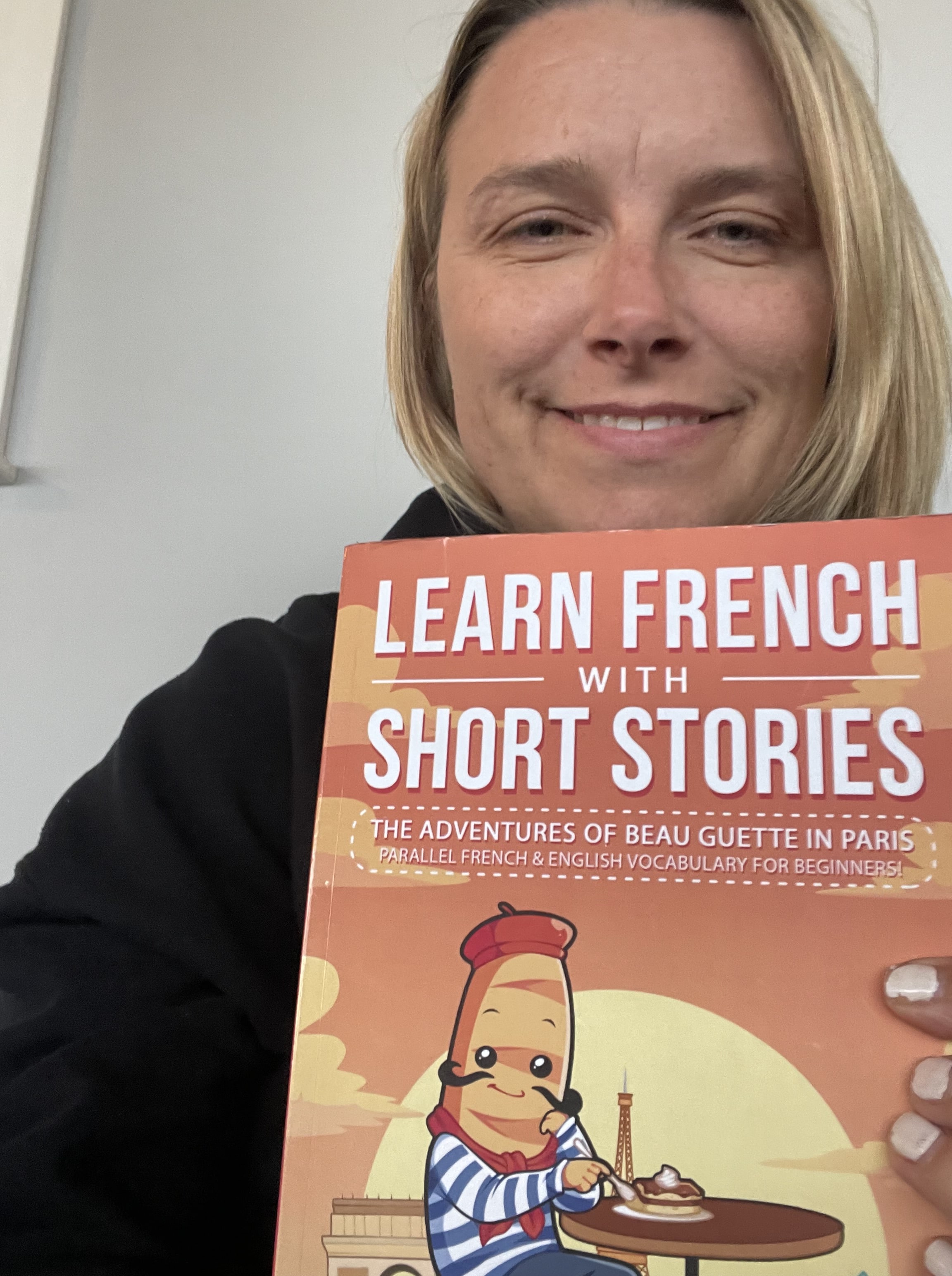 This book is fun. It's broken down into short stories which are easily digestible and each took me about 10-15 minutes to read (I'm currently somewhere between A2-B1 on my path to learning French). The stories aid you in learning some harder vocabulary and allow you to read either just with French in front of you, or with both French and English side by side, so you can translate. BONUS, you can do audio too, and follow along.