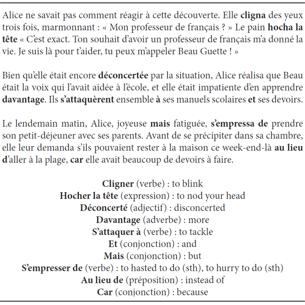 Every chapter of this book is crafted in both French alone and a parallel text format, featuring bilingual French and English text side by side. This unique structure eliminates the need to flip through a dictionary, saving you time and making the learning process more efficient and enjoyable.