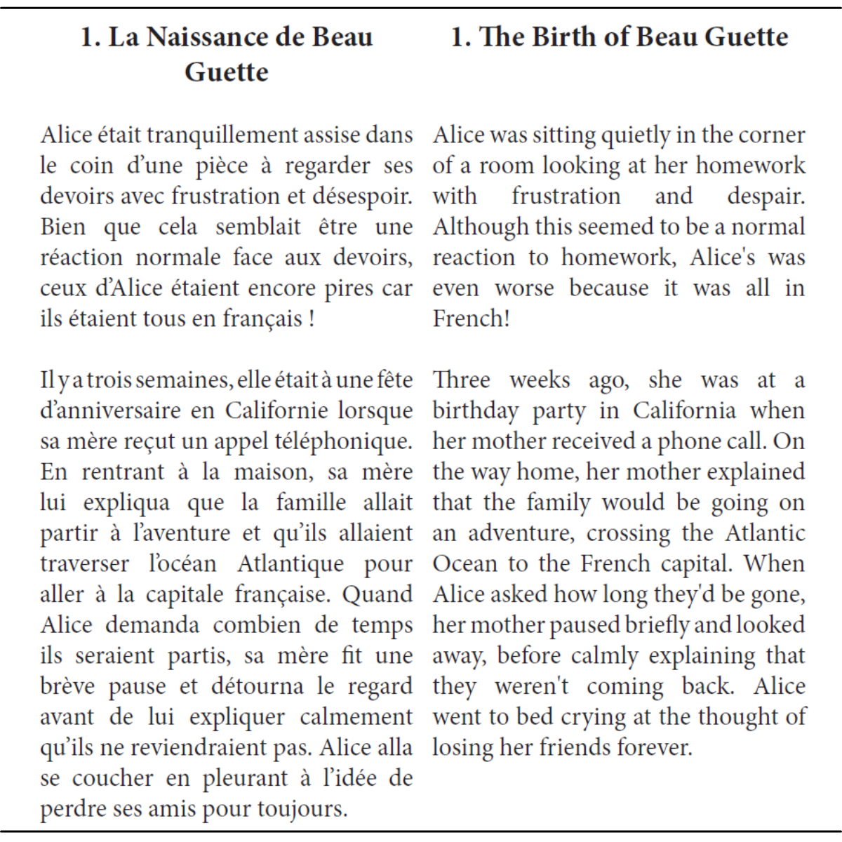2. Read the side-by-side French/English section to fill in any gaps you weren’t able to understand.